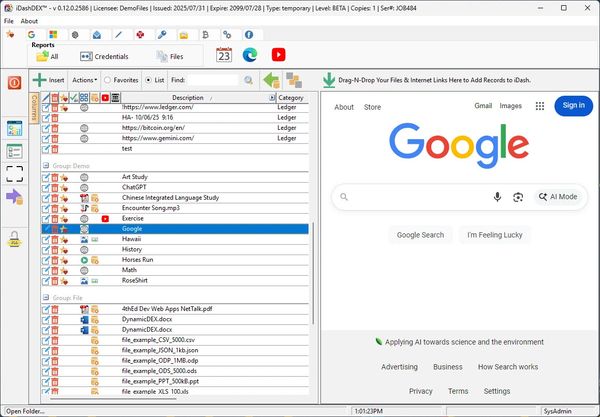 This is a comprehensive digital content management interface that enables users to organize, edit, and control access to their documents and records within the iDashDEX system.